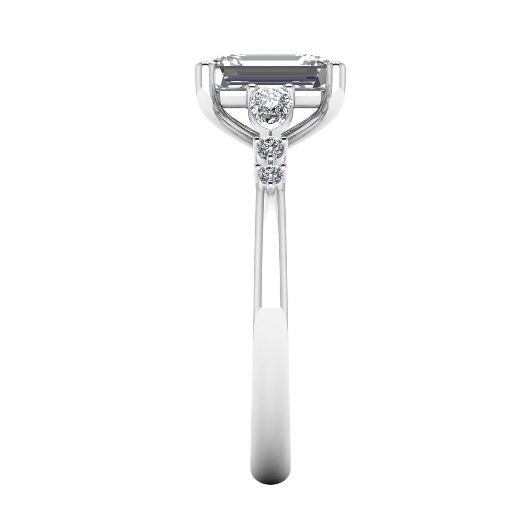 Harrogate Jewellers' CLARA Lab Grown Emerald Cut Solitaire ring with mixed cut Diamond Shoulders in platinum, perfect for Earth Mined Diamond Wedding Rings in Yorkshire.